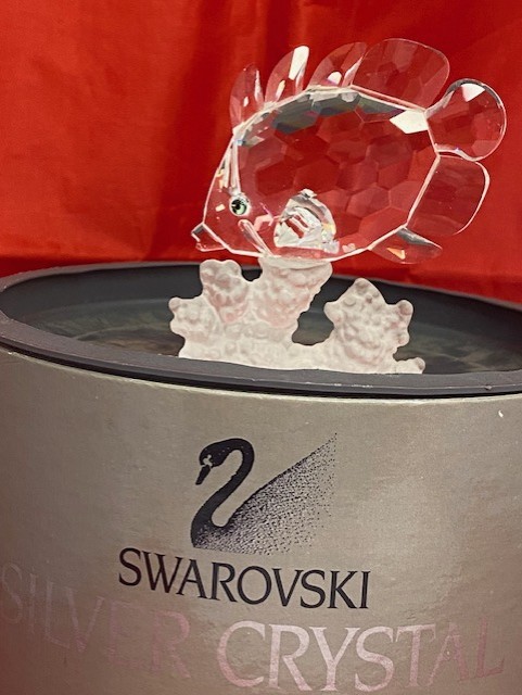 SWAROVSKI CRYSTAL BUTTERFLY FISH ON CORAL BOXED RETIRED RARE (1212)