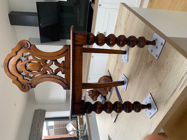 Antique Victorian oak hall chair with bobbin turned front legs circa 1880 (1243)