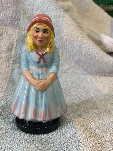 VINTAGE ARTONE POTTERY Little Nell Staffordshire England hand painted. A character from Charles Dickens novel The old curiosity shop part of a Dickens series stands 4 inch tall displays well